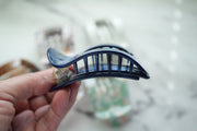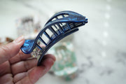 This flat blue hair claw clip, measuring approximately 3.9 inches, is expertly designed for medium hair. Crafted from durable materials, it provides a secure and comfortable hold suitable for all-day wear. Combining quality and functionality, this clip is an essential accessory for maintaining a polished and effortless hairstyle.