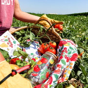 Introducing our Tomato Vine Glass Can the newest addition to our Tomato Vine Collection, featuring a charming hand-illustrated Tomato vine design. Accompanied by a bamboo lid and stainless steel straw this cup makes the perfect drinkware to hold your favorite beverages while at the farmers market, garden, or home. A unique tomato design makes this an ideal gift for farmers, gardeners, or those who simply enjoy farm-fresh tomatoes. Gift this latte glass at your next housewarming party, or birthday celebration or to brighten your fellow tomato lovers day. Features | Hand-painted design printed on glass, bamboo lid and stainless steel straw included Material | Glass Size | Holds 16 oz; Height: 6.1", Diameter: 3.2" Care Instructions | Hand wash only