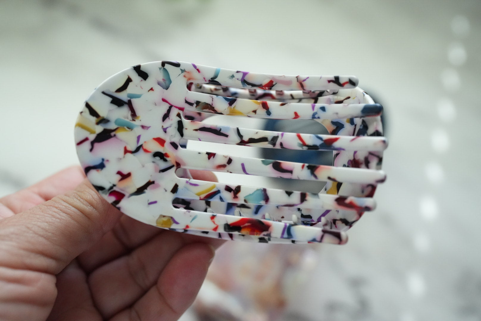The FLAT HAIR CLAW CLIP Fiesta Color combines durability with style, crafted from high-quality materials to ensure long-lasting use. Measuring approximately 3.9 inches, this medium-sized clip offers a comfortable fit ideal for all-day wear. Its vibrant Fiesta Color adds a lively touch to any hairstyle, making it both a practical and fashionable accessory.